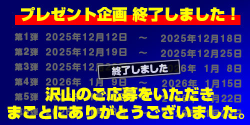 応募期間・2025年12月12日(金)〜2026年1月29日(木)まで、毎週開催で全6回にわたって実施してまいりましたが、今シーズンのキャンペーンは終了しました。